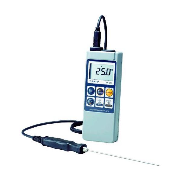 佐藤計量器製作所メーカーお問い合わせ:06-6944-0921【特長】●防水仕様 JIS C 0920 IPX4に準拠しています。●メモリー機能付です。●上限・下限温度のお知らせ機能付です。●温度指示計は、オプションセンサを変える事で-99.9~1250℃まで測定可能です。●センサはサーミスタとK熱電対の両方が接続可能です。低温域はサーミスタ、高温域はK熱電対と使い分けることができます。【用途】●食品の調理温度管理や研究所、工場の製品管理など。【仕様】●測定温度範囲(℃):-100~300●温度最小表示(℃):0.1/1●タイプ:1プローブ●電源:単4乾電池×4本(付属)【仕様2】●幅×奥行×高さ:66×25×175mm●K熱電対標準センサ付(SK-S100K)●K熱電対標準センサSK-S100Kが不要の場合は、SK-1260指示計のみをご購入ください。(SK-1260指示計のみ JAN:4974425800001)●SK-1260指示計のみをご購入される場合は、他オプションセンサをお買い求めください。【セット内容/付属品】●K熱電対SK-S100Kセンサ(1本)●単4マンガン電池(4本)●取扱説明書(1冊)●ソフトケース(ストラップ付)(1個)【注意】●標準センサSK-S100Kが不要な場合は、SK-1260指示計のみとオプションセンサをご購入下さい。【原産国】日本