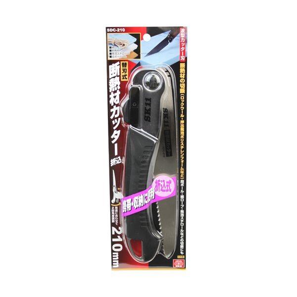 【用途】断熱材・段ボール・綿ロープ・発泡スチロールなどの切断作業。【機能・特徴】刃は耐久性のあるハイカーボンスチール製です。表面は無電解ニッケルメッキ処理でさびにくく、滑りが良いです。折込式なので携帯・収納に便利です。刃の角度を2段階に切り替えできます。【仕様】●刃渡り:210mm。●刃厚:0.8mm。●適合替刃:SK11断熱材カッター替刃(SDCB-210)。●刃:SK-5。【注意事項ほか】作業スペースを充分に確保し、周囲の安全を確認してください。曲線切り等の無理な切込みは危大工道具 鋸 替刃式折込鋸