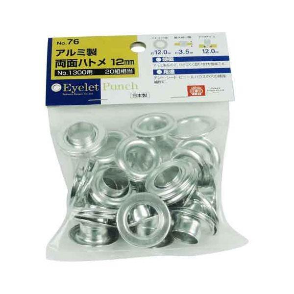 【用途】テント、シート、ビニールハウス等の穴の補強・補修。【機能・特徴】SK11両面ハトメパンチ(No.1300)に使用可能です。両面になっているので、丈夫です。【仕様】●ハトメ穴径:約12.0mm。●最大取付厚:約3.5mm。●下穴サイズ:12.0mm。●入数:20組相当入。●適合機種:SK11両面ハトメパンチ(No.1300)。●アルミ。【注意事項ほか】玉の入数は重量を目安に入れております。ハトメと裏座の数が合わない事がありますが、表示数量以上は入っておりますのでご了承くだ大工道具 錐ピット皮ポンチハトメ ハトメパンチ