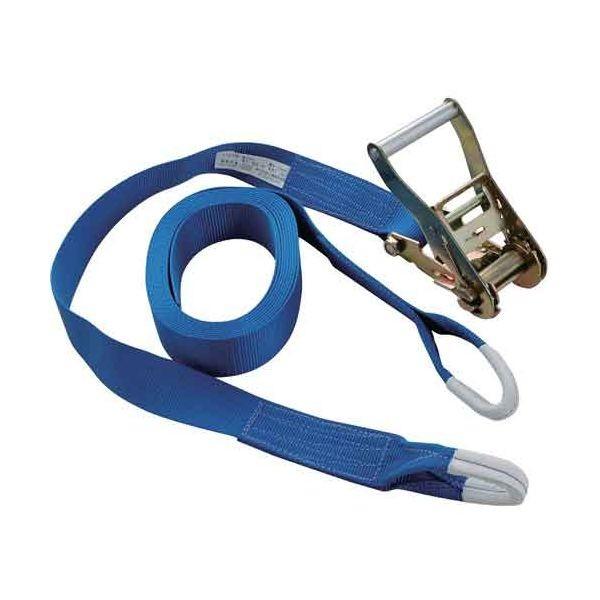 【用途】中型トラックなどで積み荷の固定。【機能・特徴】プロ仕様のラチェット式で素早く確実に作業が出来ます。ソフトなシボリ縫製で積荷や車体にやさしい設計です。【仕様】●荷締ベルト長さ:5.0m。●ラチェットベルト長さ:1.0m。●ベルト幅:50mm。●破断荷重:2500kgf。●シボリ縫製。●ワイドラチェットハンドル。●使用荷重:500kgf。【材質】●ベルト:ポリエステル。【注意事項ほか】●ベルトが鋭角部に接触する箇所には適当な「当てもの」「パット」を当ててください。●ラチェットバックルの巻き取り軸にベルトを巻き取りすぎないでください。余分な長さは締める前に調整してください。●ご使用前にベルトに亀裂などが発生していないか確認してください。万一発見した場合は使用しないでください。バックル本体を投げたり、引きずったりしないでください。ベルト強度の低下防止のため、ねじったり結んだりして使用しないでください。使用中は指や手を挟まないように注意してください。