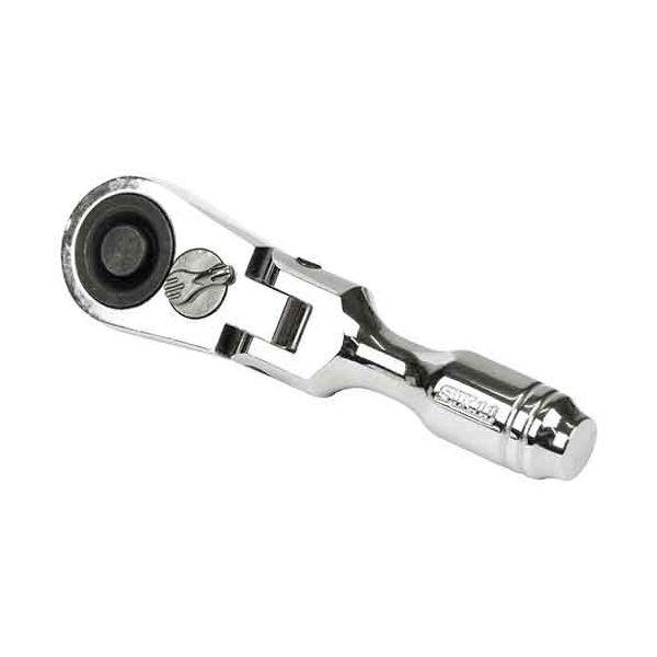 【用途】ソケットと組み合わせ、六角ボルト・ナットやネジの締付け、緩め作業。【機能・特徴】ワンサイズ小さく設計された極小ヘッドは、従来商品では使用できない、より窮屈なスペースでの作業が可能です。ギア数72山採用で、振り幅の制限された狭い場所でも細かな送り角度で、操作性抜群です。【仕様】●差込角:9.5mm(3/8インチ)。●ヘッド幅:27mm。●ヘッド厚:12.5mm。●全長:100mm。作業工具 ソケット ハンドル