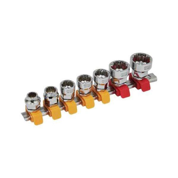【用途】六角ボルト・ナットの締付け、緩め作業。【機能・特徴】ソケットサイズ8~14mmは差込角6.35ラチェットハンドルでの使用と、ギアレンチ14mmでの使用が可能です。ソケットサイズ17・19mmは差込角9.5ラチェットハンドルでの使用と、ギアレンチ17mmでの使用が可能です。極低ソケットで狭い場所での作業性抜群です。新型ソケットホルダーを採用で、ワンタッチ操作で、簡単にソケットを取外せ、確実にソケットを取付けられます。六角ボルト(ミリ)に対応します。【仕様】●差込角:6.35mm(1作業工具 ソケット ソケットレンチセット