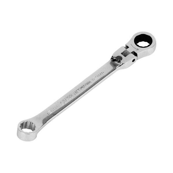 【用途】六角ボルト・ナットの締付け、緩め作業。【機能・特徴】180度首振りフリー状態と、13段階の角度調整で固定できるロック状態を任意で選択ができる新機構を採用しました。メガネ部はボルト・ナットとの接触面をより大きくする設計で、確実で安心な作業が可能であるとともに、コンパクトなレンチ外形をも実現しました。メガネ部は15度オフセット、ラチェット部での本締めも可能ですが、メガネ部で安心の作業が可能です。本体はエッジの効いたシャープなフォルムです。本体側面を厚くデザインし、手に優しい側面形状です。作業工具 スパナ ラチェットスパナ