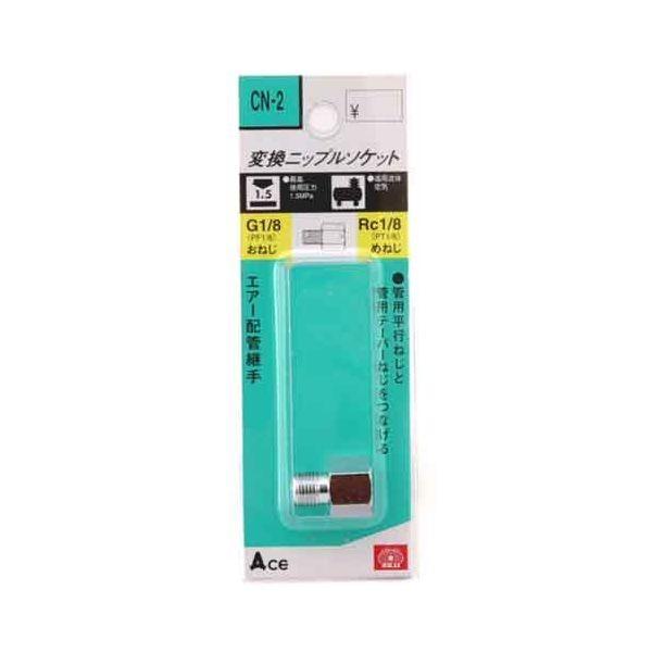 【用途】エアー配管継手(変換ニップルソケット)。【機能・特徴】管用平行ねじと管用テーパーねじをつなげることが出来ます。【仕様】●接続ねじ:おねじG(PF)1/8・めねじRc(PT)1/8。●適用流体:空気。●最高使用圧力:1.5MPa。●真鍮。電動工具 エアーツール 配管継ぎ手ねじ