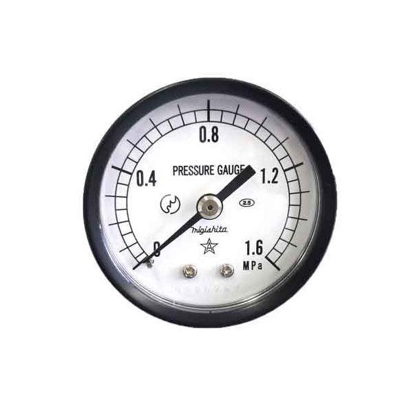 【用途】この圧力計は定圧力に使用する目的でJISB7505ブルドン管圧力計に準拠して製作。【機能・特徴】コンパクトな形状です。指針の動きが円滑です。製作に付きましてはJISB7505ブルドン管圧力計に準拠しております。【仕様】●大きさ径:50mm。●接続部:R1/4(管用テーパーねじPT1/4)。●圧力レンジ(MPa):圧力計0~1.6MPa。●精度(±パーセントFS):2.5。●目盛り回転角:270度。●使用場所:油圧・水圧・車輌・船舶・ポンプ。●使用流体:空気・水・油。●電電動工具 エアーツール 圧力計機器