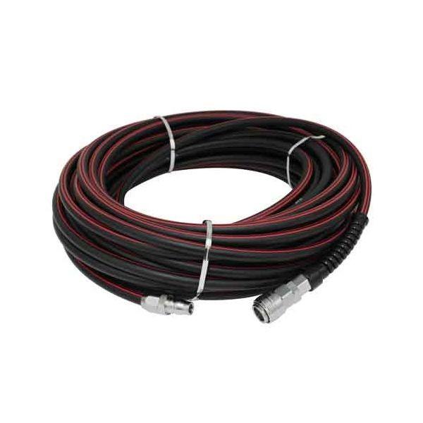 【用途】常圧エア用ソケットプラグ付きエアホース。【機能・特徴】常圧エアホースでワンタッチソケット・プラグ付きです。ダイセン製DSLITE軽量小型ソケット採用で従来品に比べ手元負担が軽減できました。特殊エアラストマー樹脂採用で耐スパッタホースです。【仕様】●サイズ:内径6.5mm×外径10.0mm。●ホース長:20m。●最高使用圧力:1.5Mpa。●使用流体:圧縮空気。●接続形状:汎用ソケット・プラグ。●ホース:特殊エラストマー樹脂。●ソケット:鉄・真ちゅう・NBR。●プラグ:鉄電動工具 エアーツール ホースリール