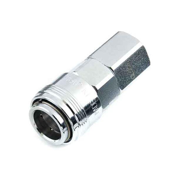 【用途】汎用ソケット。【機能・特徴】エア配管を簡単にワンタッチで脱着出来ます。従来品と同形状の差し込み形状で本体を大幅に小型軽量化しました。純日本製です。【仕様】●汎用エアソケット。●Rc1/4。●サイズ:50.7X23。●重量:78g。●適用流体:空気。●最高使用圧力:1.5Mpa。●本体:鋼鉄・他。●Oリング:NBR。電動工具 エアーツール カプラジョイント