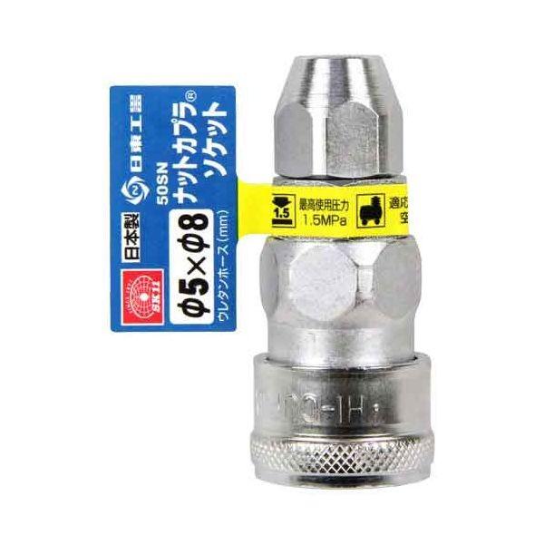 【用途】工場内の圧縮空気配管から空圧工具や機器の接続など。【機能・特徴】低圧汎用型空気配管用です。スリーブを引いて接続するツータッチタイプです。ホースバンド不要でウレタンホースを簡単確実に接続できます。【仕様】●最高使用圧力:1.5MPa。●取付ウレタンホースサイズ:5.0mmX8.0mm。●使用温度範囲:-20度~+60度。●クロームメッキ。●本体:鋼鉄。●シール:ニトリルゴム(NBR)。電動工具 エアーツール カプラジョイント