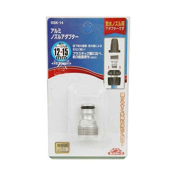 【用途】散水ノズル用アダプター。【機能・特徴】落下時の衝撃・紫外線による劣化に強い商品です。プラスチック製に比べ約3倍長持ちです(当社従来比)。【仕様】●適合ホース:(内径)12~15mm・(外径)20mmまで使用可能。●アルミ。園芸用品 散水用品 散水パーツ