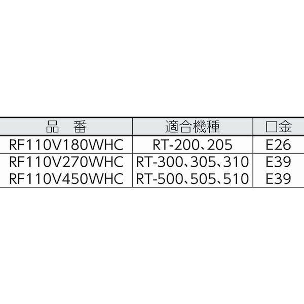 【特長】●節電約10%の仕様です。【仕様】●球寿命(時間):1000●消費電力(W):450●適合機種:RT-500、505、510●電源(V):110●標準消費電力料金:12.15円/h●明るさ(lm):5200●消費電力(W/V):450/110●定格寿命:1000時間●口金:E39【仕様2】●屋外型【原産国】中国