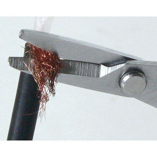 ホーザンメーカーお問い合わせ:06-6567-3132【特長】●刃はギザ付です。●摩耗に強く、なめらかな切れ味を保つハードクロムメッキ仕上げです。●光ファイバーケーブルなどに使用されているアラミド繊維の切断にも適しています。【用途】●薄手のアルミ板、銅より線、同軸ケーブル、アラミド繊維の切断に。【仕様】●刃長(mm):28●刃厚(mm):2.5●全長(mm):160●切断能力(mm):銅より線2mm[[の2乗]]、アルミ0.7【仕様2】●切断能力:銅より線2mm[[の2乗]]、アルミ0.7mm●刃部硬度:HRC59【材質/仕上】●刃部:鋼【原産国】日本