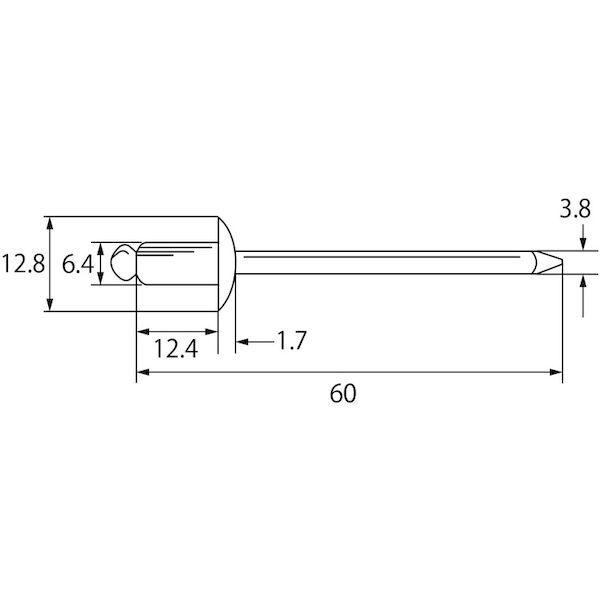 ロブテックスメーカーお問い合わせ:072-980-1111【特長】●片側から複数の母材をワン・アクションで締結できますので作業の省力化や生産性の向上に貢献します。【用途】●厨房機器、業務用冷蔵庫など。【仕様】●かしめ板厚(mm):3.2~6.4●リベット長(mm):12.4●フランジ径(mm):12.8●リベット径(mm):6.4●下穴径(mm):6.5~6.6●せん断荷重(N):9300●引張荷重(N):11300●頭部径(mm):-【仕様2】●箱入●RoHS指令適合品【材質/仕上】●リベット本体(フランジ):ステンレス(SUS305)●マンドレル(シャフト):ステンレス(SUS304相当材)【原産国】日本