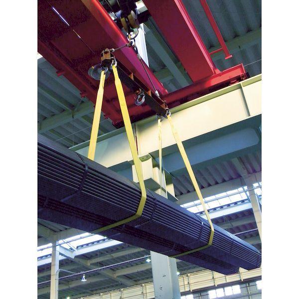 【特長】●JIS最上級等級(4等級)の強力ベルトスリングです。●強力ポリエステル糸を使用しており、引張強度、耐久性、耐摩耗性、低伸度など優れた特長があります。●内部に白い芯糸が入っており、ベルトが摩耗・損傷した場合の廃棄基準が分りやすくなっています。●長さ別にアイ部を色分けしたことにより、ベルトごとの整理・管理を容易にしました。【用途】●一般屋内外での玉掛け作業。【仕様】●最大使用荷重(t):1●全長(m):4●ベルト寸法(mm)幅×厚さ:25×10.0●アイ部幅(mm):28●アイ部長さ(mm):200●アイ部厚さ(mm):9●縫製部長さ(mm):200●色:紫●JIS4等級:○【仕様2】●バランス吊り用1本吊り●等級:DINEN1492-1●JIS B 8818 4等級●両端アイ形【材質/仕上】●ポリエステル【注意】●ZE0250050はJIS規格外品です。●繊維製品ですので寸法に多少の誤差があります。2本組などで厳密な長さ揃えが必要な場合には事前にご相談ください。●荷物の鋭利な角や摩擦によってベルトスリングなどの繊維スリングを傷つける恐れがある箇所には、必ずコーナーパッドなどの当て物を使用してください。●当て物を使用していても荷物の横滑りや周囲の壁や物への接触、加圧などによりスリングが損傷および切断する可能性がありますので作業環境には十分に注意してご使用ください。【原産国】日本