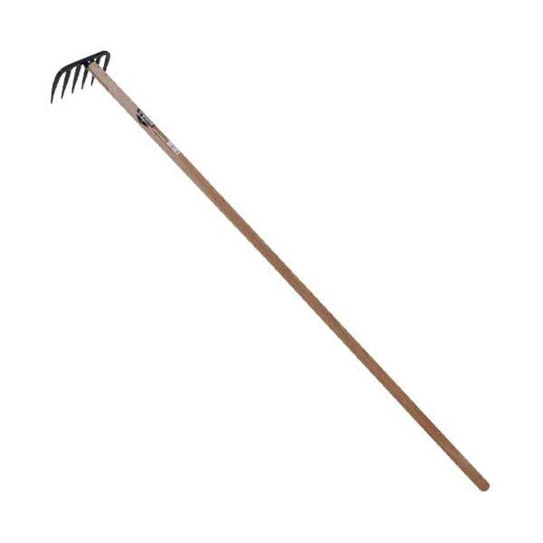 【用途】レーキ。【機能・特徴】整地・集草作業用です。庭及び畑などの土ならし、ゴミ収集にも最適です。手造り鍛造品ですから強度があり、丈夫で長期間ご使用になれます。【仕様】●6本爪。●頭部:刃物鋼。●柄部:木。【注意事項ほか】本来の用途以外には使用しないで下さい。使用前には本体あるいは部品にがたつき・緩みが無いことを確認してください。使用の際には保護めがね・手袋などを着用してください。使用後は汚れを取り、子供の手の届かない安全な場所に保管してください。園芸道具 土農具 レーキ