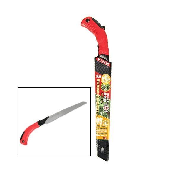 【用途】剪定作業用。【機能・特徴】ベルト通し付樹脂製鞘で収納、持ち運びに便利です。柄ラストマー樹脂グリップで滑りにくく衝撃を吸収します。高硬度全身焼入刃を採用しています。経済的な替刃式です。【仕様】●剪定目(10枚目)。●最適切断目安:約120mm。●高硬度全身焼入刃。●刃部:刃物鋼。●グリップ:エラストマー樹脂。【注意事項ほか】本来の用途以外では使用しないでください。園芸道具 園芸鋸 万能