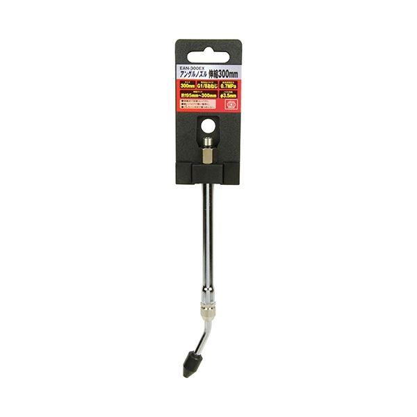 【用途】エアーダスター用ノズル。【機能・特徴】伸縮式で、コンパクトに収納できます。細いパイプで狭い場所でも使用できます。ゴムラバー付きで対象物に傷がつきにくいです。アングルが360度回転するので、狙い通りに作業できます。【仕様】●伸縮サイズ:195~300mm(2段伸縮)。●最高使用圧力:0.7MPa。●取付ねじサイズ:G1/8おねじ。●ノズル内径:3.5mm。●回転式。●先端ラバーチップ付き。●先端アングル付き。●本体:鉄・亜鉛ダイキャスト。【注意事項ほか】火気や引火性電動工具 エアーツール ダスター