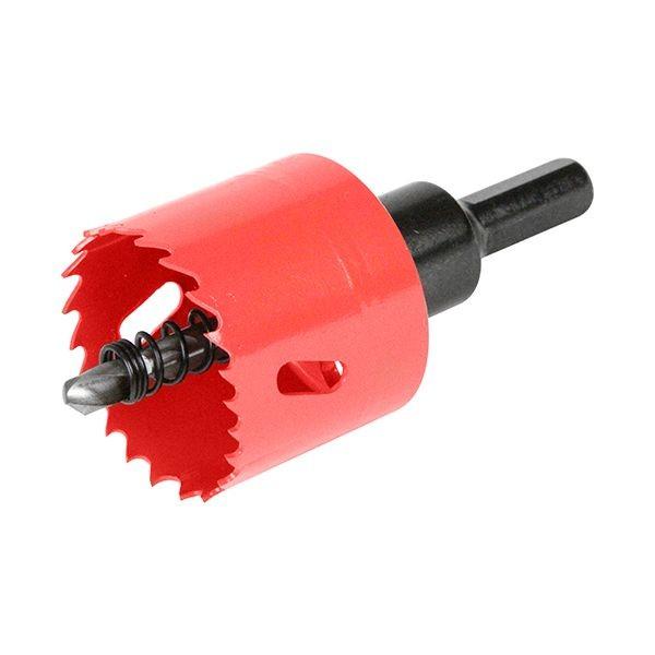 【用途】一般鋼(鉄)・木材・塩ビ・石膏ボード等への穴あけ作業。【機能・特徴】ツバ無しタイプなので、貫通穴あけ作業でも使用可能です。刃先にはM42コバルトハイス鋼を採用し、切れ味、耐久性抜群です。不等ピッチ刃を採用することで、穴あけ時の振動を抑え効率よい穴あけ作業が可能です。薄刃0.8mm設計により切削抵抗が少なく、速い穴あけが可能です。センタードリルスプリング付で、穴あけ後のカス抜きが容易です。【仕様】●サイズ:42mm。●穴あけ可能板厚:一般鋼(鉄)3.2mm。●刃厚:0.8mm。先端工具 鉄工アクセサリ 鉄工ホールソー