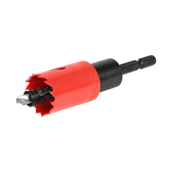 【用途】一般鋼(鉄)・木材・塩ビ・石膏ボード等への穴あけ作業。【機能・特徴】ツバ無しタイプなので、貫通穴あけ作業でも使用可能です。刃先にはM42コバルトハイス鋼を採用し、切れ味、耐久性抜群です。不等ピッチ刃を採用することで、穴あけ時の振動を抑え効率よい穴あけ作業が可能です。薄刃0.8mm設計により切削抵抗が少なく、速い穴あけが可能です。センタードリルスプリング付で、穴あけ後のカス抜きが容易です。【仕様】●サイズ:25mm。●穴あけ可能板厚:一般鋼(鉄)3.2mm。●刃厚:0.8mm。先端工具 鉄工アクセサリ 鉄工ホールソー