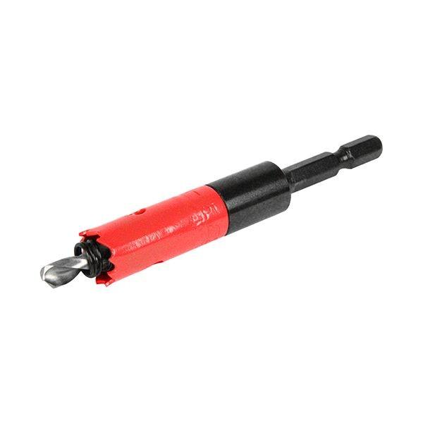 【用途】一般鋼(鉄)・木材・塩ビ・石膏ボード等への穴あけ作業。【機能・特徴】ツバ無しタイプなので、貫通穴あけ作業でも使用可能です。刃先にはM42コバルトハイス鋼を採用し、切れ味、耐久性抜群です。不等ピッチ刃を採用することで、穴あけ時の振動を抑え効率よい穴あけ作業が可能です。薄刃0.8mm設計により切削抵抗が少なく、速い穴あけが可能です。センタードリルスプリング付で、穴あけ後のカス抜きが容易です。【仕様】●サイズ:15mm。●穴あけ可能板厚:一般鋼(鉄)3.2mm。●刃厚:0.8mm。先端工具 鉄工アクセサリ 鉄工ホールソー