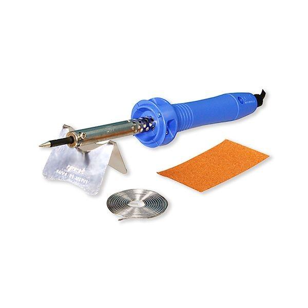【用途】電子工作から電器・模型工作まで幅広いはんだ付け。【機能・特徴】軽量グリップで作業しやすく、こて先は長寿命タイプで鉛フリー対応となっています。ホビー・工作に最適なスタンダードモデルです。【仕様】●消費電力:30W。●温度:480度。●全長:205mm。●重量:45g。●66ナイロン。●ステンレス。●金属。●はんだこて・はんだ・折り曲げこて台・紙ヤスリ。【注意事項ほか】火災に十分注意し使用して下さい。使用中はこての握り部分以外は高温になりますので触れないで下さい。火災作業工具 はんだトーチ DIY はんだトーチ