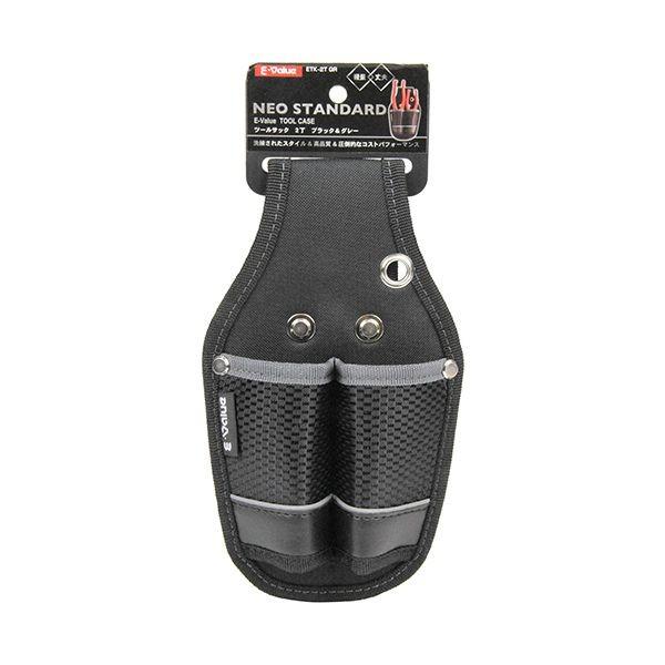 【用途】2丁差ツールサック。【機能・特徴】軽量で丈夫です。ペンチなどの携帯に便利です。【仕様】●サイズ:約幅130×奥行30×高さ240mm。●色:ブラック・グレー。●ポリエステル。【注意事項ほか】バックル、リベットなどの金具類の変形、ゆるみ及びほつれなど、異常のまま使用しないで下さい。腰をかがめたり、と飛び跳ねたりすると工具が脱落する恐れがありますので、市販の安全コードと併用してください。合成繊維製品ですので、火気、薬品等に近づけて使用しないでください。収納用品 腰袋 サック