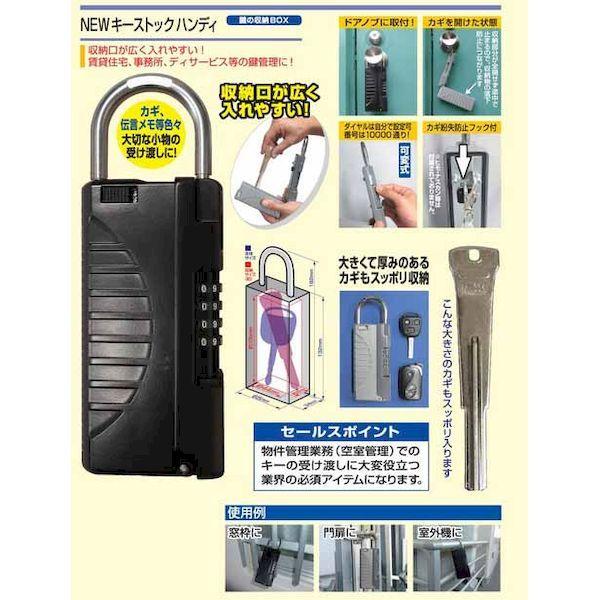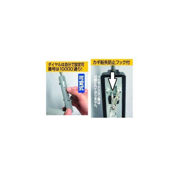 ノムラテックメーカーお問い合わせ:06-6756-7301収納口が広く使いやすいキーボックスです。施錠・解錠はダイヤル式でキーは不要!倉庫等で使用されるロングキーや、自動車の大型キーも収納可能!暗証番号は可変式ですので、自分の好きな番号にセットできます。伝言メモ紙など収納物の一時保管・受け渡しにも(防水加工はしておりません)。材質:本体/亜鉛ダイカスト、シャックル/スチール(焼入れ処理)、ダイヤル部/亜鉛ダイカスト本体サイズ:63×174×32mm