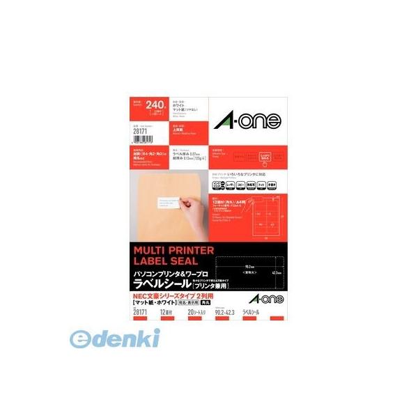 ●いろいろなプリンタで印刷できるラベルです。●宛名用や表示用のラベルが手軽にキレイに作れます。●多くのパソコンソフトで推奨されています。[エーワン パソコンプリンタ&ワープロラベルシール(プリンタ兼用) A4判 12面 20(240片)シート入り ●シートサイズ:A4判 (210×297mm)●一片サイズ:90.2mm×42.3mm●面付:12面 2列×6段●厚み:120g/m2(0.13mm)●ラベル・カード厚み:0.06mm●材質:上質紙●白色度:81%●入数:20シート(240片)