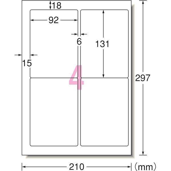 ●いろいろなプリンタで印刷できるマルチタイプのラベルです。●はがきに貼りやすいサイズのラベルが手軽にキレイに作れます。●高品質の素材を使用しているため、印刷適性に優れています。[エーワン ラベルシール(15シート/60片入り) ●入数:15シート(60片)●シートサイズ:A4判(21×29.7cm)●一片サイズ:9.2×13.1cm●面付:4面 2列×2段●厚み:125g/m2(0.13mm)●ラベル・カード厚み:0.07mm●材質:上質紙エーワン ラベルシール 宛名シール ラベルシール[プリンタ兼用] A4 4面 四辺余白付 角丸 15シート入 【エーワン】