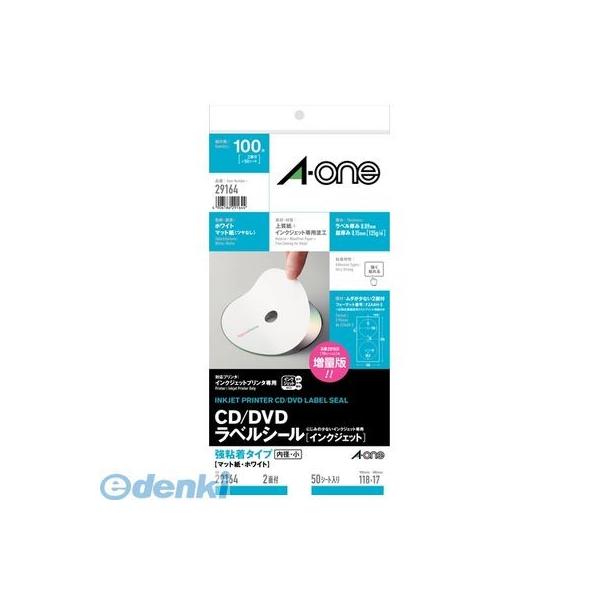 ●高品質のインクジェット用紙を使用したCDラベルシールです。●内径が小さいので広々とデザインできます。CDやDVDの表示・分類に便利です。●ミシン目で切り離して1枚でも印刷できます。[エーワン CD/DVDラベルシール 強粘着タイプ マット紙・ホワイト A4判変型 2面 内径・小 50シート入り ●対応プリンタ:インクジェットプリンタ(染料系インク・顔料系インクに対応)●シートサイズ:148×296mm●一片サイズ:外径118mmφ、内径17mmφ●面付:2面 1列×2段●厚み:125g/m2(0.15mm)●ラベル・カード厚み:0.09mm●白色度:89%●材質:上質紙+インクジェット専用塗工●入数:50シート(100枚)