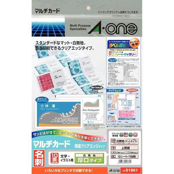 ●サイズ縦 本体:332mm●サイズ横 本体:218mm●サイズ高さ 本体:3mm●いろいろなプリンタで印刷できるタイプの名刺用紙です。●印刷後にセパレータ(裏紙)をはがすことで、名刺サイズに切り離せるクリアエッジタイプです。●名刺だけでなく幅広い用途で使える、白無地タイプでやや厚みのある用紙です。●シート数・片数:10シート(100枚)エーワン 名刺用紙 名刺 マルチカード 名刺10面 両面クリアエッジタイプ 厚口 白無地 【エーワン】