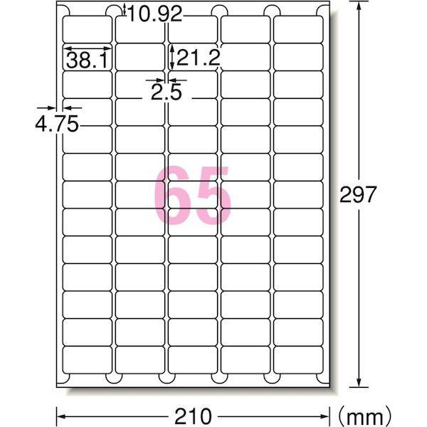 ●サイズ縦 本体:305mm●サイズ横 本体:218mm●サイズ高さ 本体:4mm●いろいろなプリンタで印刷できるラベルシールです。●環境面に配慮したFSC認証紙、無塩素漂白パルプを使用しています。●作業効率をアップさせるはがしやすい加工、スムーズ給紙を可能にした静電気防止加工を施しています。●シート数・片数:22シート(1,430片)エーワン ラベルシール 宛名シール ラベルシール[プリンタ兼用] A4 65面 四辺余白付角丸 22シート入 【エーワン】