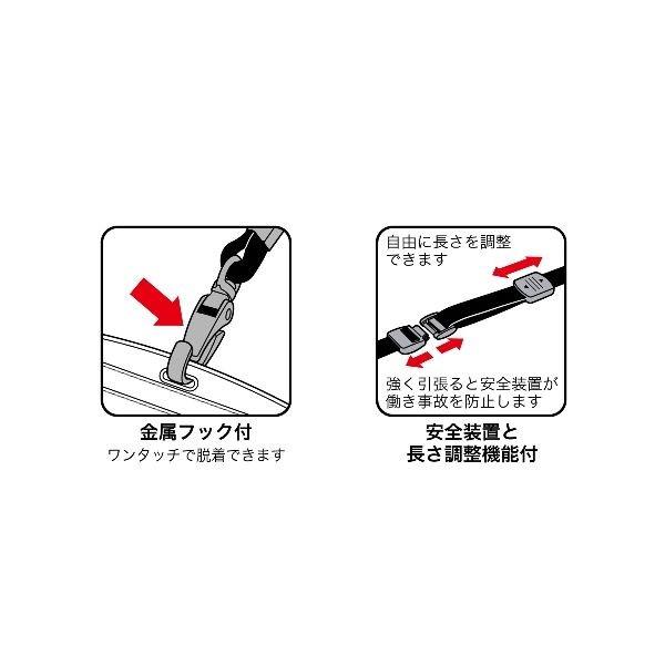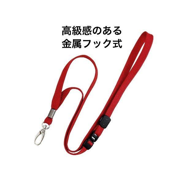 ●高級感のある金属フック式です。ワンタッチで名札用ケースが取り外しできます。●安全装置、長さ調整付●入数:10本●ひも:再生PET●ひも:長さ約90cm/幅約10mm
