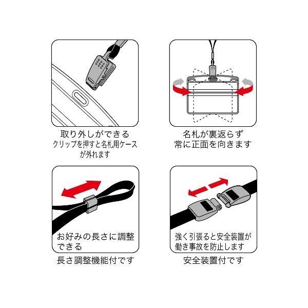 ●ロングセラーの吊り下げ名札です。名札用ケースはチャック式で水やホコリが入りにくい。●安全装置、長さ調整付●入数:1枚●ひも:再生PET/ケース:再生ポリオレフィン●ひも:長さ約90cm/幅約10mm●中紙サイズ:W97XH69mm