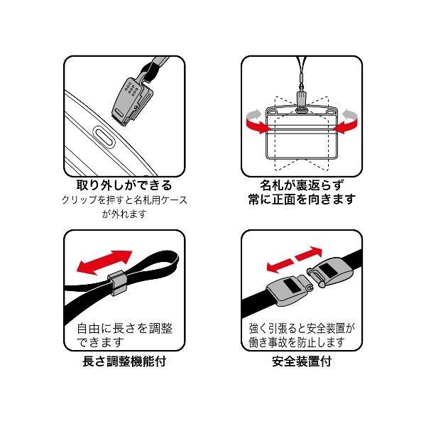 ●吊り下げ名札のスタンダードです。名札用ケースはチャック式で水やホコリが入りにくい。●安全装置、長さ調整付●入数:10枚●ひも:再生PET/ケース:再生ポリオレフィン●ひも:長さ約90cm/幅約10mm●中紙サイズ:W90XH55mm