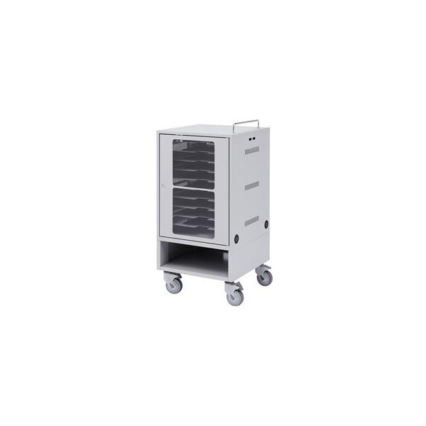 サンワサプライメーカーお問い合わせ:03-5763-0011●タブレットを一括で10台収納できる鍵付き保管庫です。(有効内寸:W444×D320×H55mm)●ボックス下部にはフリースペースがあり、無線LAN機器やマニュアルなどを置くことができます。また、嵩上げにより、ボックス下部のタブレットも取りやすくなっています。●各棚板には滑り止めマットが取付けられており、タブレットのすべり落ちや傷防止になっています。また、タブレットが取り出しやすいように前方に切り欠きを入れています。●充電用にタップを本体前部、後部に取付けることができるスペ