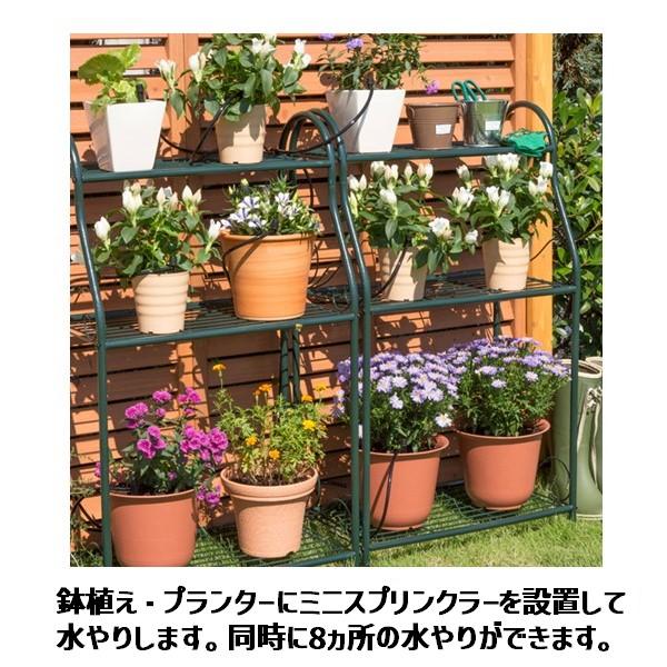(株)タカギメーカーお問い合わせ:0120-37-5580鉢植え・プランターに最適差込型スプリンクラ―を8本揃えたキット品かんたん水やりタイマーは別売りです。 ●『ポットスプリンクラー噴水』×8本、ホース、チューブ、コネクターのセット。●鉢植え、プランター向け仕様●最大使用可能水圧:0.7MPa(7kgf/cm2)セット内容 ●調圧ジョイント…1コ●9mm水やりホース(10m)…1巻●4mm水やりホース(10m)…1巻●9mmジョイント 4mm分岐…2コ●9mmジョイント エンドキャップ…1コ●4mmジョイント 4分岐…2コ●ポットスプリンクラー 噴水…8本●取扱説明書…1冊