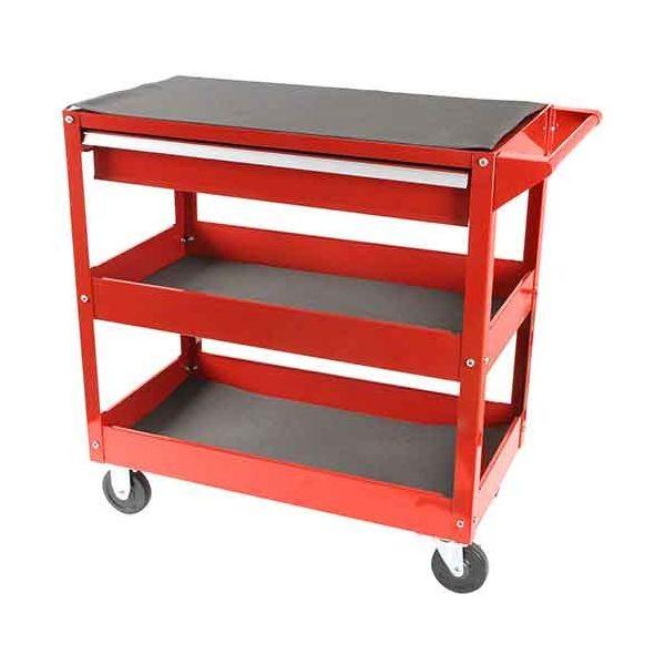 【用途】道具・小物の収納、移動。【機能・特徴】天板、各トレイには保護マットが付いています。【仕様】●本体サイズ:幅735×奥385×高さ775mm。●引出しサイズ:幅630×奥340×高さ80mm。●棚サイズ:幅730×奥380×高さ80mm。●本体重量:17kg。●ストッパー付き自在キャスター(2輪)、固定キャスター(2輪)。●本体最大耐荷重:100kg。作業工具 ソケット キャビネット