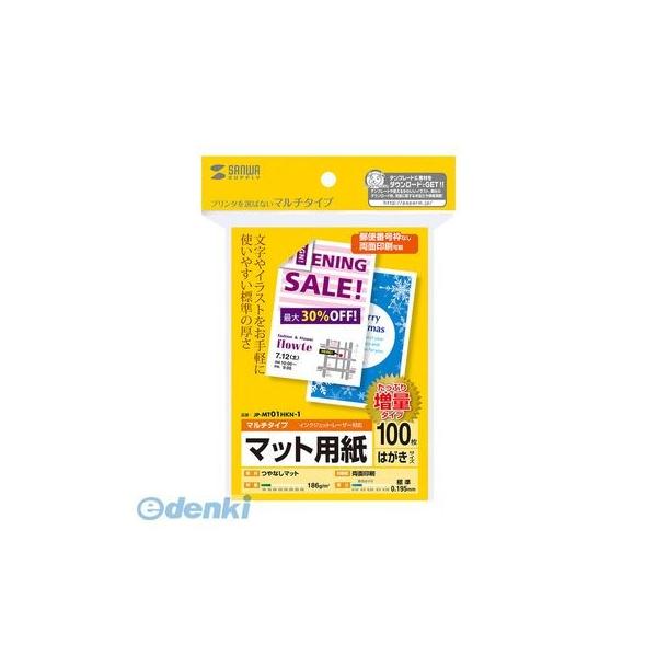 サンワサプライメーカーお問い合わせ:03-5763-0011【商品説明】●インクジェットプリンタ、レーザープリンタなどプリンタを選ばず使えるマルチタイプのはがきサイズカード用紙。文字やイラスト中心のお手軽印刷に最適。●カードや季節のご挨拶、DMなど幅広い用途に。●宛名面には郵便番号枠の印刷がないので、両面に自由に印刷できます。●サイズ:ハガキ(100×148mm)●入り数:100シート●重量:186g/m2●厚み:0.195mm●白色度:92%以上●対応プリンタ:インクジェットプリンタ(エプソン 顔料系インクにも対応)、カラーレーザープリンタ・モノクロレーザープリンタ、カラーコピー、モノクロコピー、熱転写プリンタ●インクリボン使用時