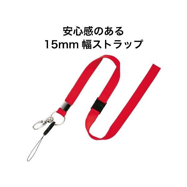 【商品説明】●携帯電話用にも使える15mm幅。●ストラップ長:90cm●ストラップ幅:約15mm●材質:ストラップ=再生PET,先端パーツ=金属ナスカン●本体色:赤●1本