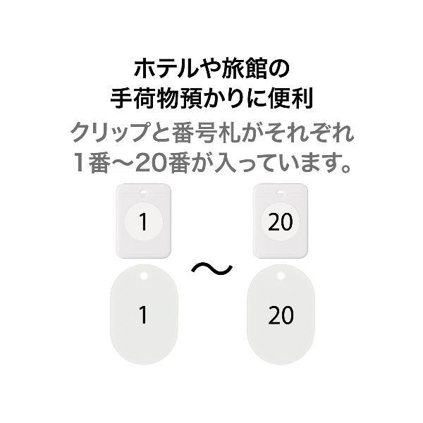 【商品説明】●ホテルや旅館の手荷物預かりに便利です。●番号が1~20入●本体:スチロール●クリップW33XD46XH27mm/番号札:W40XD60XH2.7mm