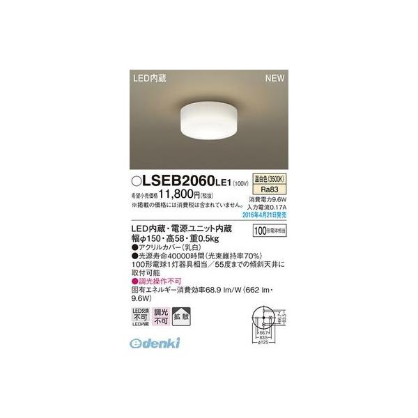 パナソニック LSEB2060LE1 LEDシーリングライト100形温白色 小型シーリングライト LED小型シーリングライト