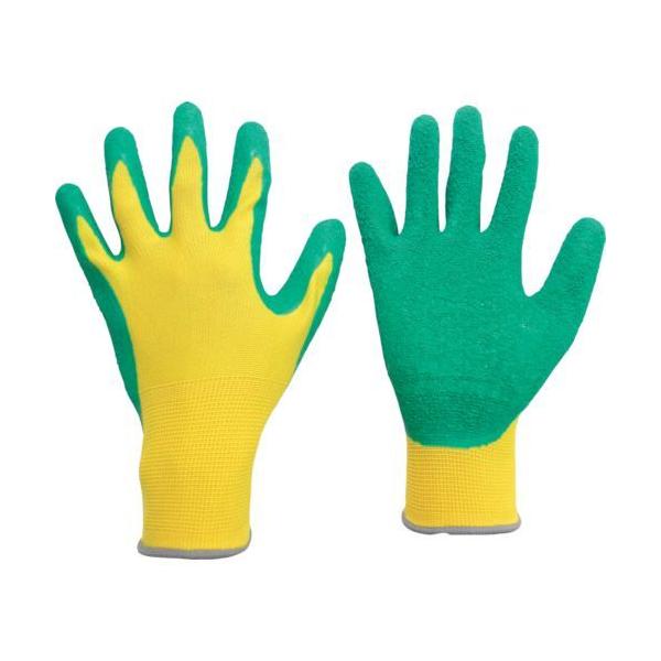 ミドリ安全メーカーお問い合わせ:048-989-3177【特長】●特殊すべり止め加工をした天然ゴムコーティングで、グリップ力に優れています。●裾部分にほつれ防止のオーバーブロック加工を施しており、洗濯して繰り返し使用できます。●低臭加工を施しています。●繊維部分にポリエステルを使用しているため、さらっとした装着感が得られます。【用途】●運送業、土木建設業、清掃業、倉庫作業、園芸作業などに。【仕様】●色:イエロー/グリーン●サイズ:L●厚さ(mm):1.7●リストカラー:グレー●全長(cm):24.5●手のひら周り(cm):20.6●中指長さ(cm):7.8【仕様2】●13ゲージシームレス編【材質/仕上】●繊維部:ポリエステル、ゴム●すべり止め部:天然ゴム【原産国】中国