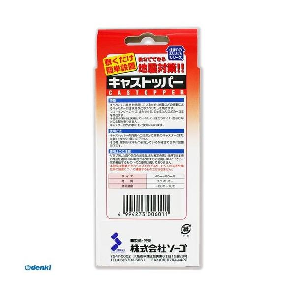 【商品説明】●すべりにくい素材を使用しているため、地震などの振動によるキャスター付き家具などのスベリだしを防ぎます。●フローリングへのキズ・またタタミ、じゅうたんなどのヘコミを防ぎます。●半透明の素材を使用しているため、目立ちにくく、色移行などの心配がありません。●キャスター以外の脚にもご使用になれます。●キャスターの下に敷くだけ。●キャスターではない通常の脚でもご利用いただけます。●対応脚サイズ:40mm~50mm●色:透明●材質:エラストマー樹脂