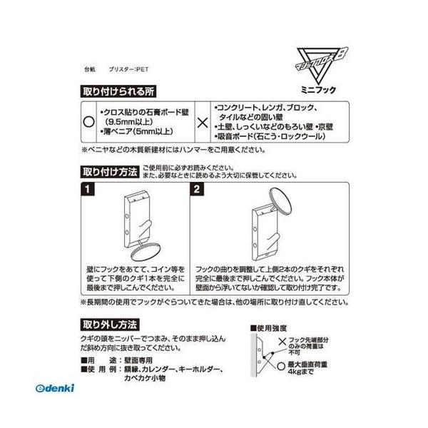 【商品説明】●クギがクロスして、石膏ボード壁に強力固定!●抜き跡が目立たない!●コイン等で取付け簡単!●壁面専用。使用例:額縁、カレンダー、キーホルダー、カベカケ小物●取付けられる場所:クロス貼りの石膏ボード壁(9.5mm以上)、薄ベニヤ(5mm以上)●●ベニヤなどの木質新建材にはハンマーをご用意ください。●●石膏ボード壁の取り付けには、専用工具(プッシュマジック、クギ押しくん)もございます。●耐荷重:4kg●色:ホワイト●材質:本体:ナイロン樹脂、クギ:ステンレス