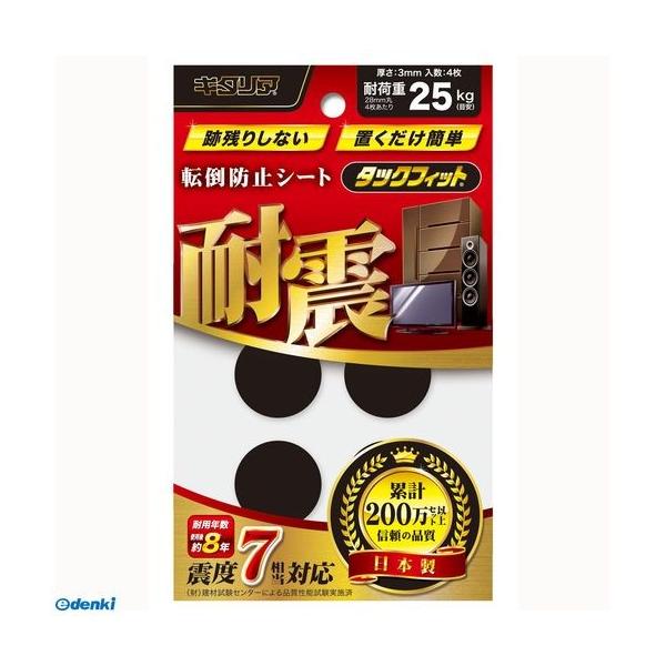 【商品説明】●家具や薄型テレビの転倒防止!●取り付け簡単!●本製品を外しても、床をキズつけず跡残りしない。●表面を水洗いすると、繰り返し使える!●テレビ/PC/置物/家電製品●●重心が低い物●耐用年数:約8年●1パック4枚入り(4枚使用で耐荷重:25kg)●色:ブラック●商品サイズ:φ28●厚さ3mm●材質:スチレン系ポリマー