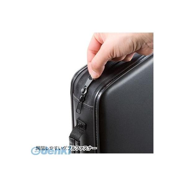 サンワサプライメーカーお問い合わせ:03-5763-0011【商品説明】●ブルーレイディスクの収納に対応した凹凸が少なく柔らかい不織布を採用。●ケース部分はフレーム構造を採用したPP素材のセミハードケースでメディアを衝撃から保護します。●持ち運びに便利な取っ手付きのファスナータイプです。●ダブルファスナーでどちらにも開閉することができます。●不織布にはディスクを出し入れしやすい切れ込みと、飛び出しを防ぐサイドストッパーが付いています。●収容量:Blu-ray・DVD・CD 96枚●サイズ:W170×D78×H293mm●材質:PP(ケース、不織布)