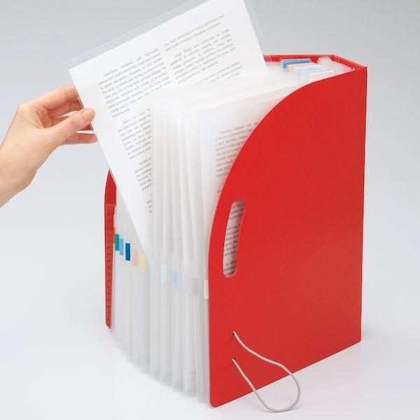【商品説明】●分類・検索性に優れたジャバラタイプのボックスファイル。●卓上では大きく広げて使え、しまう時はスッキリ収納。
