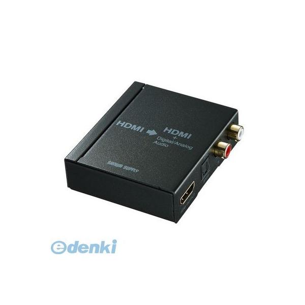 サンワサプライメーカーお問い合わせ:03-5763-0011【商品説明】●パソコンやHDMI映像機器のHDMI信号から音声信号を分離し、光デジタル信号・アナログ音声信号に変換し出力させることができるHDMI信号オーディオ分離器です。●元のHDMI信号(映像・音声)はそのままディスプレイ・プロジェクター等に出力しつつ、HDMI音声を分離しAVアンプやスピーカーへ出力することで迫力あるサウンドを楽しむことができます。●音声出力のないディスプレイ等で使用し、外部スピーカーから音声出力させたい場合にも最適です。●光デジタル(角型)での出力が可能で高品質なデジタル音声のままAVアンプなどへ出力することができます。●ARCモードにも対応しており、ARCモードをONにすればテレビ放送音声を本製品経由でAVアンプやスピーカーなどから出力させることが可能です。●対応入力機器:HDMI出力端子を標準搭載している映像機器・家庭用ゲーム機・パソコン●対応出力機器:HDMI側:HDMI入力端子を標準搭載しているテレビ・プロジェクター・パソコン用ディスプレイなど、オーディオ側:光デジタル(角型)入力を持つ機器、アナログ音声入力を持つ機器●インターフェース:入力用:HDMI タイプA(19PIN)メス×1、出力用:HDMI タイプA(19PIN)メス×1、Toslink×1、RCAピンジャック(赤白)×1●HDCP:HDCP1.4準拠●対応解像度:4K2K(4096×2160)@30Hz、主な対応解像度:4096x2160@30Hz (4:4:4)、3840x2160@30Hz (4:4:4)、3840x2160@30Hz (4:2:2)、1920×1200@60Hz、1920×1080@60Hz●対応音声フォーマット(HDMI入力側・出力側):Dolby Digital 2.0ch/5.1ch、Dolby Digital Plus2.0ch/5.1ch/7.1ch、Dolby TrueHD 2.0ch/5.1ch/7.1ch、DTS5.1ch、DTS HD5.1ch、LPCM2ch(最大24bit 192KHz)●対応音声フォーマット(光デジタル出力側):Dolby Digital 2.0ch/5.1ch、Dolby Digital Plus2.0ch/5.1ch、Dolby TrueHD 2.0ch/5.1ch、DTS5.1ch、DTS HD5.1ch、LPCM2ch(最大24bit 192KHz)●対応音声フォーマット(アナログ出力側):LPCM2ch(最大24bit 48KHz)●機器間制御(CEC):対応 ●全ての機器で動作を保証するものではありません。●消費電力:1W●稼動温度/湿度:温度0~40℃、湿度80%以下(結露なきこと)●保存温度/湿度:温度-20~60℃、湿度80%以下(結露なきこと)●材質:スチール●サイズ:W60×D70×H20mm●重量:約125g●付属品:ACアダプタ×1、取扱説明書