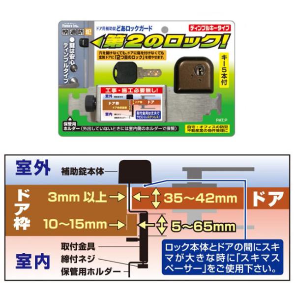 ノムラテックメーカーお問い合わせ:06-6756-7301●キズをつけずに取付可能。2つ目のロックを増やせます。●鍵は安心、防犯性の高いディンプルキータイプ。●鍵タイプ:ディンプルキー●カラー:ブラウン●サイズ:44X47X37mm