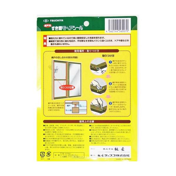 槌屋メーカーお問い合わせ:03-5402-5463●国内主要サッシメーカーすべてが採用している、高品質すき間用シール材。●網戸のすき間をふさぎ、虫の侵入を防ぐ!●復元力に優れているので長い期間安定した性能を保ちます。●緻密で弾力性に富む毛足が、不均等なすき間もバランス良くふさぎ、ドアや窓などの動きも損ないません。●網戸の室内側の両端に貼ることですき間を無くし、虫の侵入をふさぎます。●カラー:ブロンズ●サイズ:6mmX9.5mmX2m●材質:毛:ナイロン●ベース:ポリプロピレン●粘着剤:アクリル系両面テープ